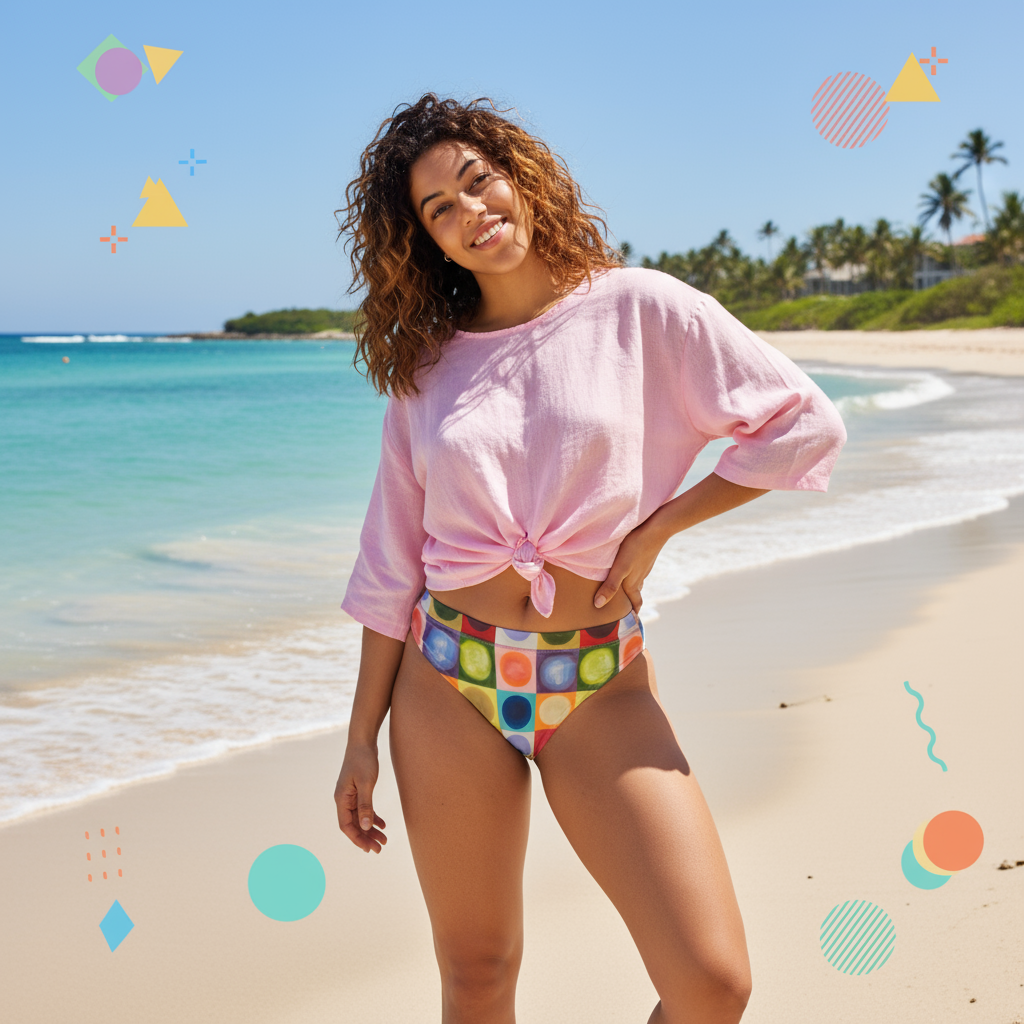 whimsy Fit High-waisted Bikini Bottom Womens Matching Women Rash Guards Colorful Swimsuit Beach Vacations SPF Women Swimwear Womens Bright Bathing Suit