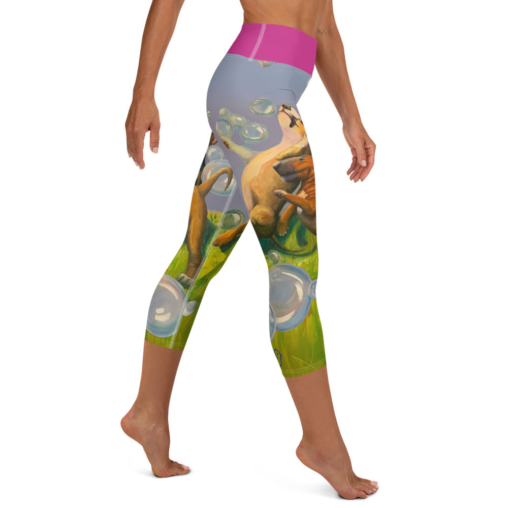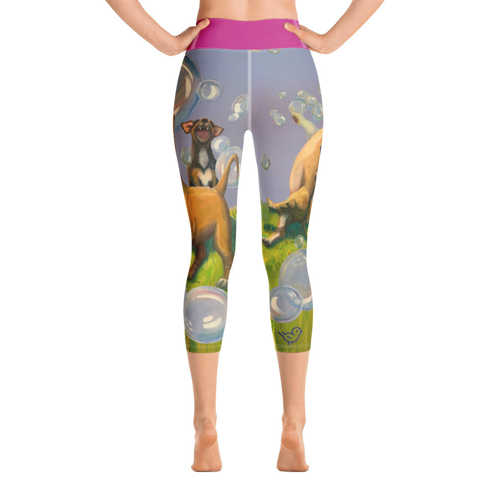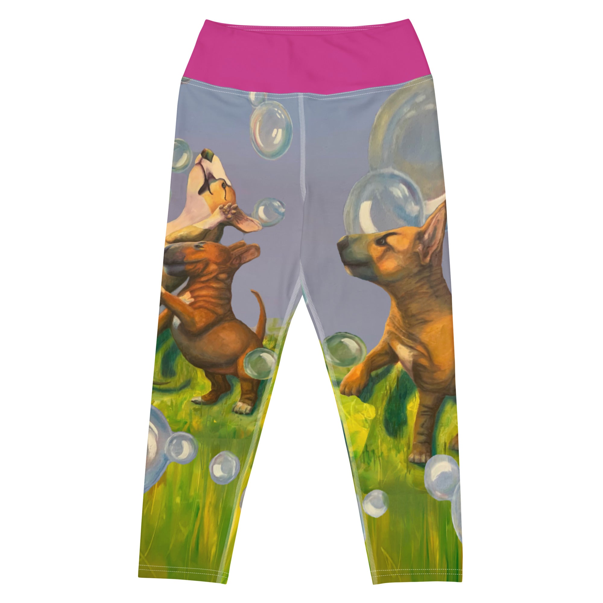 Unleash the joy! Our "Bubbles" leggings capture the pure, unadulterated happiness of a Bull Terrier at play, chasing bubbles against a vibrant blue background with a playful pop of pink on the waistband. As part of our Whimsy Fit collection, these leggings are designed for the ultimate family connection—offering matching mother-daughter designs so you and your "mini-me" can share the fun on your next adventure.