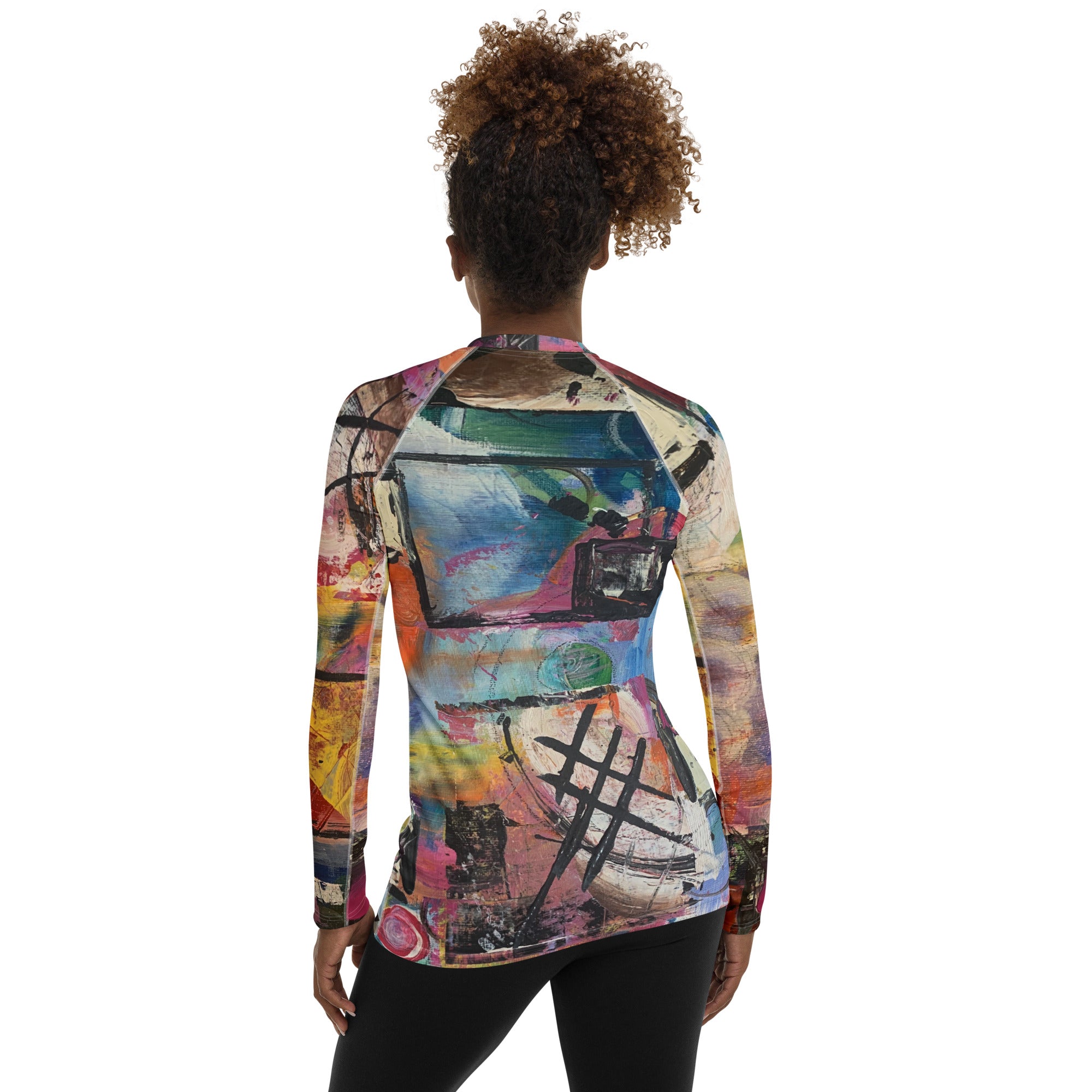 Our rash guards feature original artwork transformed into vibrant activewear patterns. Bright, playful, and eye-catching, they’re designed to make you feel confident and happy while moving.