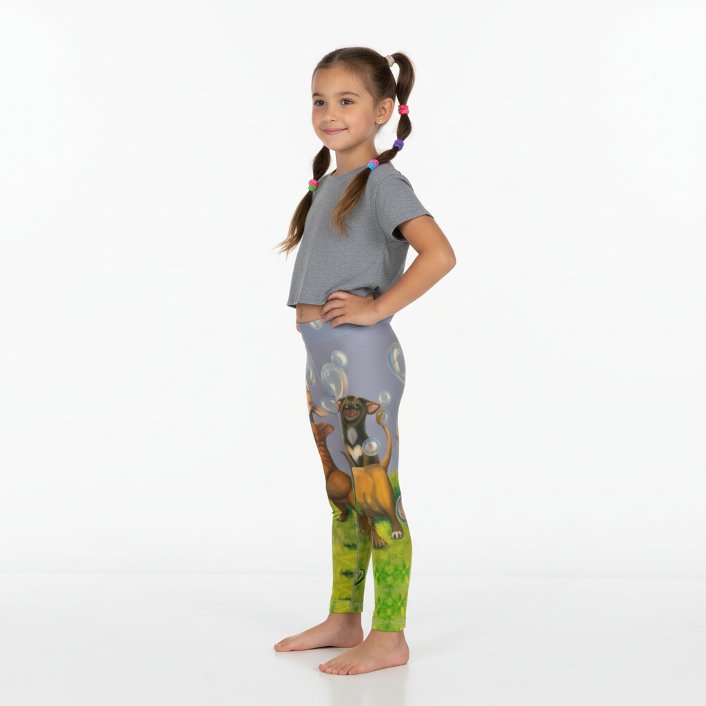 Adorable toddler and girls leggings featuring our playful "Bubbles" Bull Terrier print. Perfect for active kids who love dogs and fun, vibrant designs.